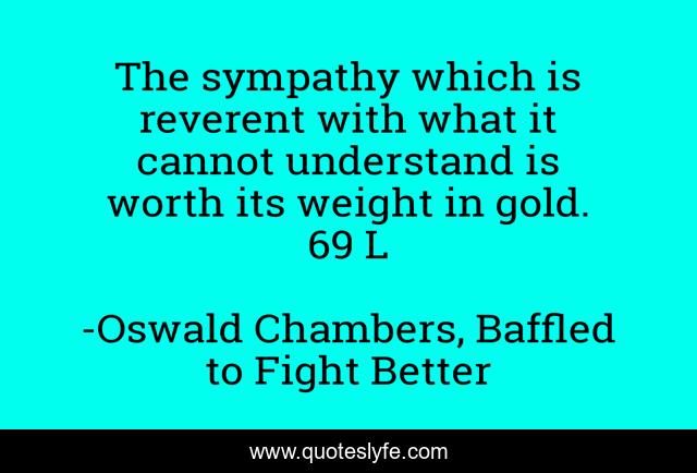 This page presents the quote "The sympathy which is reverent with what it cannot understand is worth its weight in gold. 69 L". Author of this quote is Oswald Chambers, Baffled to Fight Better. This quote is about chambers, job, suffering, reverence,.