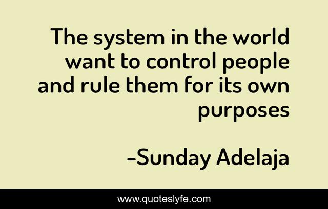 This page presents the quote "The system in the world want to control people and rule them for its own purposes". Author of this quote is Sunday Adelaja. This quote is about control, people, system, rule, calling, purpose, world,.