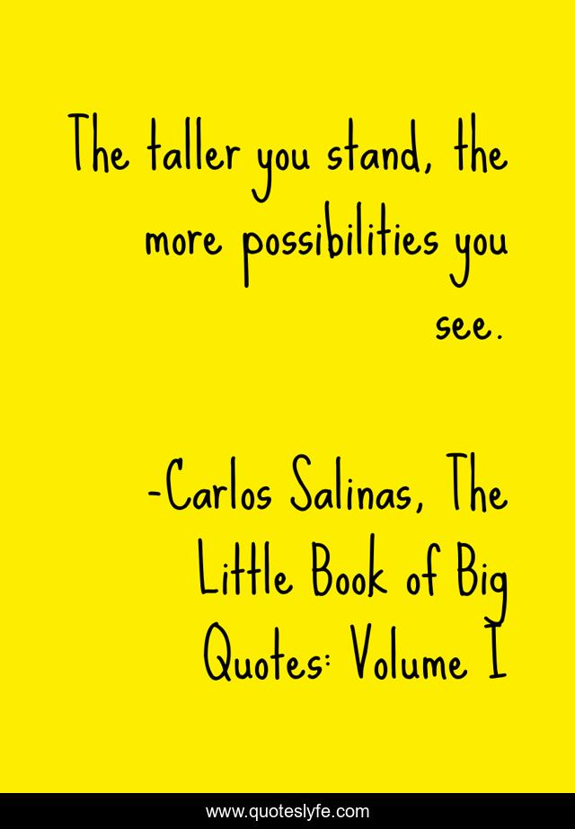 "Carlos Salinas, The Little Book of Big Quotes: Volume I Quotes." Quoteslyfe.com, 2025. Mon. 08 Dec. 2025. <https://www.quoteslyfe.com/quote/The-taller-you-stand-the-more-possibilities-13510>.