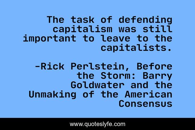 "Rick Perlstein, Before the Storm: Barry Goldwater and the Unmaking of the American Consensus Quotes." Quoteslyfe.com, 2025. Fri. 05 Dec. 2025. <https://www.quoteslyfe.com/quote/The-task-of-defending-capitalism-was-still-236593>.