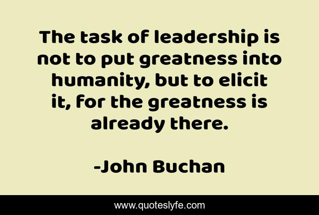 This page presents the quote "The task of leadership is not to put greatness into humanity, but to elicit it, for the greatness is already there.". Author of this quote is John Buchan. This quote is about leadership, greatness,.