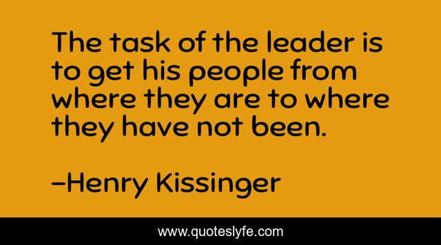 This page presents the quote "The task of the leader is to get his people from where they are to where they have not been.". Author of this quote is Henry Kissinger. .