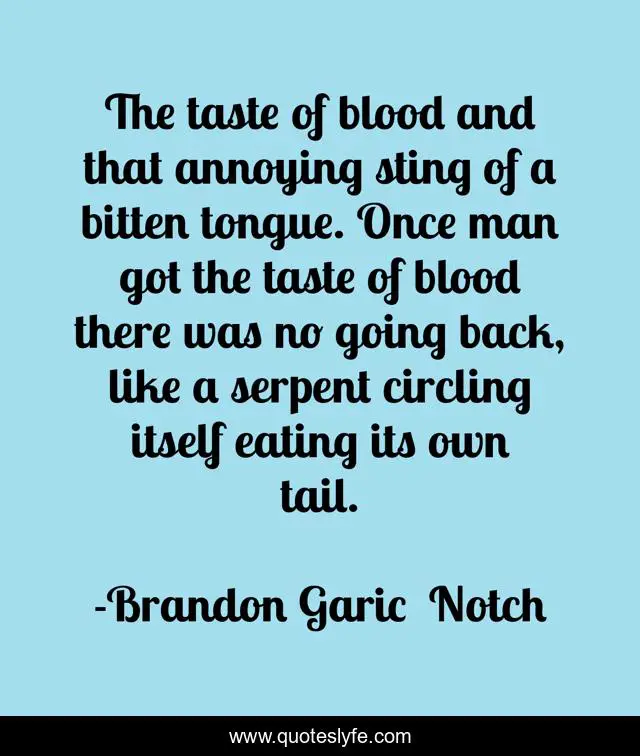 "Brandon Garic Notch Quotes." Quoteslyfe.com, 2025. Fri. 05 Dec. 2025. <https://www.quoteslyfe.com/quote/The-taste-of-blood-and-that-annoying-13781>.