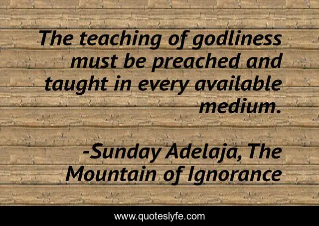 "Sunday Adelaja, The Mountain of Ignorance Quotes." Quoteslyfe.com, 2025. Fri. 05 Dec. 2025. <https://www.quoteslyfe.com/quote/The-teaching-of-godliness-must-be-preached-30811>.