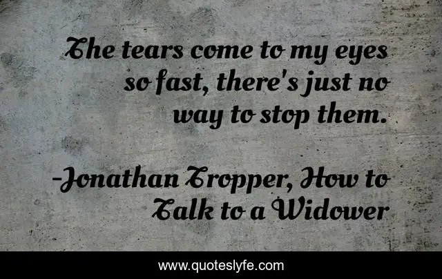 This page presents the quote "The tears come to my eyes so fast, there's just no way to stop them.". Author of this quote is Jonathan Tropper, How to Talk to a Widower. This quote is about sadness, tears,.