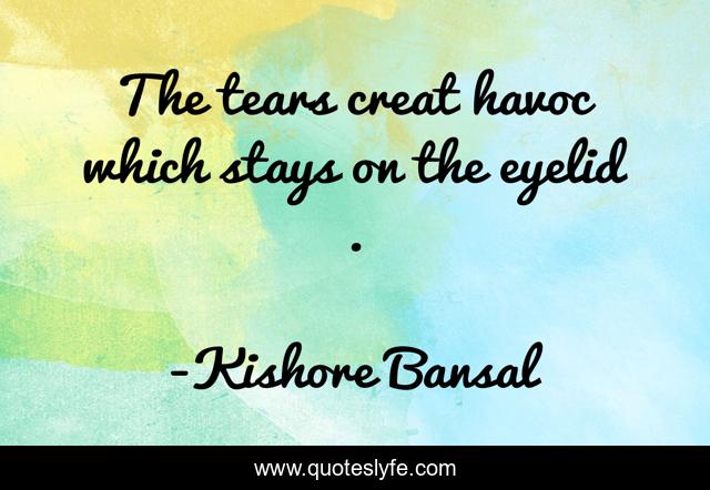 This page presents the quote "The tears creat havoc which stays on the eyelid .". Author of this quote is Kishore Bansal. This quote is about create, eyelids, tears, havoc,.