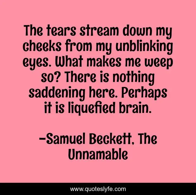 "Samuel Beckett, The Unnamable Quotes." Quoteslyfe.com, 2025. Fri. 05 Dec. 2025. <https://www.quoteslyfe.com/quote/The-tears-stream-down-my-cheeks-from-124309>.
