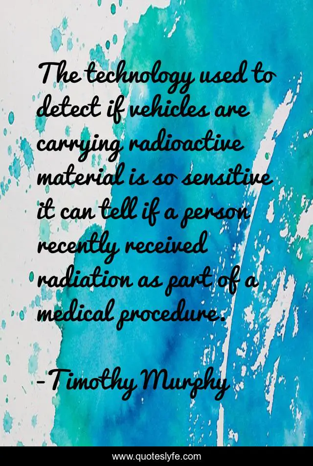 This page presents the quote "The technology used to detect if vehicles are carrying radioactive material is so sensitive it can tell if a person recently received radiation as part of a medical procedure.". Author of this quote is Timothy Murphy. This quote is about person, technology,.