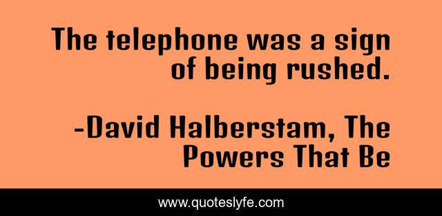 This page presents the quote "The telephone was a sign of being rushed.". Author of this quote is David Halberstam, The Powers That Be. This quote is about communication, technology,.