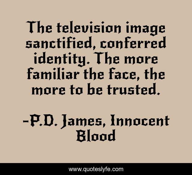 This page presents the quote "The television image sanctified, conferred identity. The more familiar the face, the more to be trusted.". Author of this quote is P.D. James, Innocent Blood. This quote is about television, trust,.
