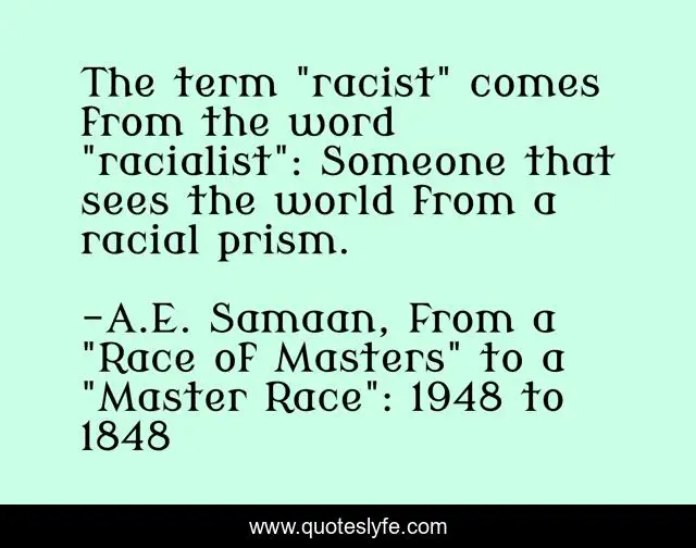 "A.E. Samaan, From a "Race of Masters" to a "Master Race": 1948 to 1848 Quotes." Quoteslyfe.com, 2025. Fri. 05 Dec. 2025. <https://www.quoteslyfe.com/quote/The-term-racist-comes-from-the-word-200415>.