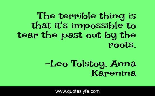 This page presents the quote "The terrible thing is that it's impossible to tear the past out by the roots.". Author of this quote is Leo Tolstoy, Anna Karenina. This quote is about past, nostalgia,.
