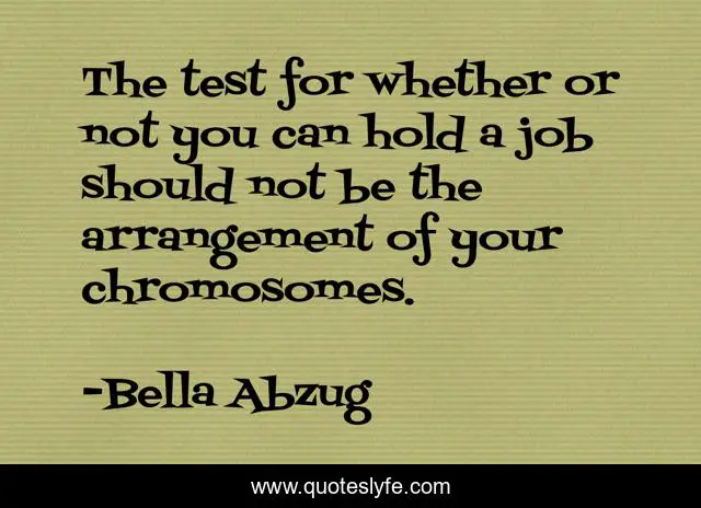 This page presents the quote "The test for whether or not you can hold a job should not be the arrangement of your chromosomes.". Author of this quote is Bella Abzug. .