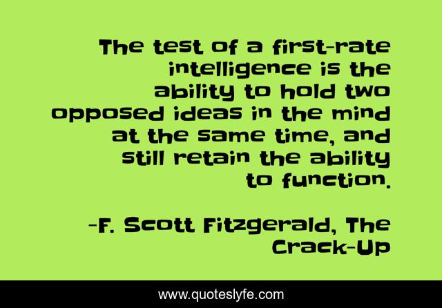 This page presents the quote "The test of a first-rate intelligence is the ability to hold two opposed ideas in the mind at the same time, and still retain the ability to function.". Author of this quote is F. Scott Fitzgerald, The Crack-Up. .