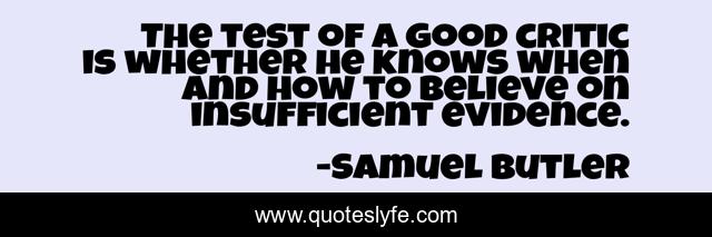 This page presents the quote "The test of a good critic is whether he knows when and how to believe on insufficient evidence.". Author of this quote is Samuel Butler. This quote is about critics, criticism,.