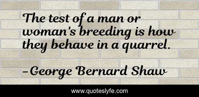 This page presents the quote "The test of a man or woman's breeding is how they behave in a quarrel.". Author of this quote is George Bernard Shaw. This quote is about quarrels, arguments,.