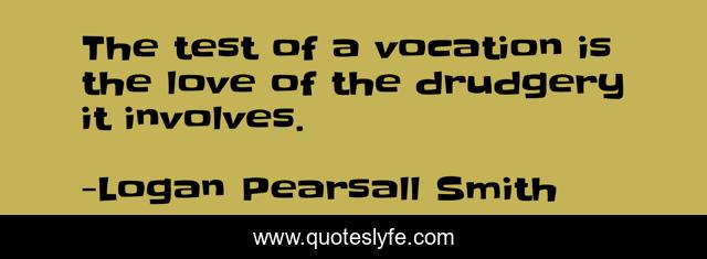 This page presents the quote "The test of a vocation is the love of the drudgery it involves.". Author of this quote is Logan Pearsall Smith. .