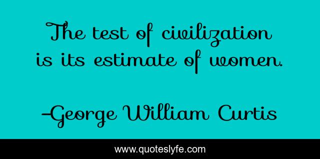 This page presents the quote "The test of civilization is its estimate of women.". Author of this quote is George William Curtis. This quote is about test, estimate, civilization,.