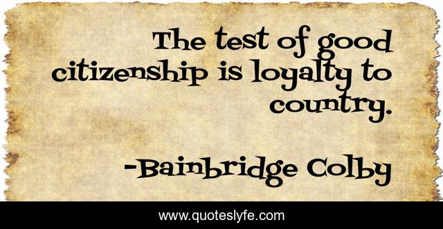 This page presents the quote "The test of good citizenship is loyalty to country.". Author of this quote is Bainbridge Colby. This quote is about loyalty, citizenship,.