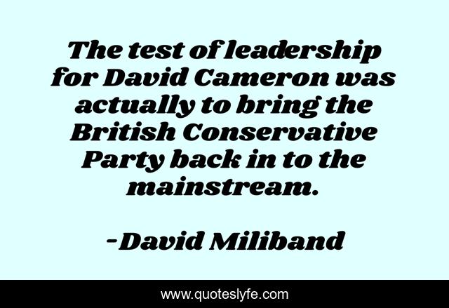 This page presents the quote "The test of leadership for David Cameron was actually to bring the British Conservative Party back in to the mainstream.". Author of this quote is David Miliband. This quote is about test, party, conservative,.