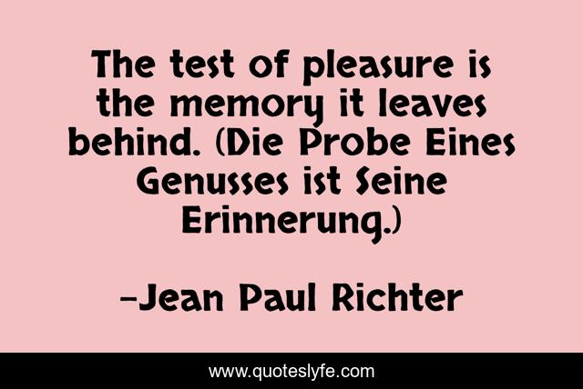 This page presents the quote "The test of pleasure is the memory it leaves behind. (Die Probe Eines Genusses ist Seine Erinnerung.)". Author of this quote is Jean Paul Richter. This quote is about enjoyment, pleasure,.