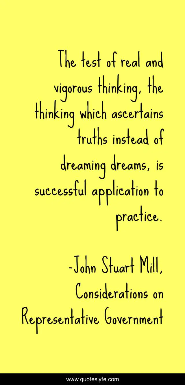 "John Stuart Mill, Considerations on Representative Government Quotes." Quoteslyfe.com, 2025. Fri. 05 Dec. 2025. <https://www.quoteslyfe.com/quote/The-test-of-real-and-vigorous-thinking-163128>.