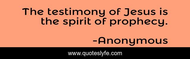 This page presents the quote "The testimony of Jesus is the spirit of prophecy.". Author of this quote is Anonymous. This quote is about prophecy, bible, end-times,.