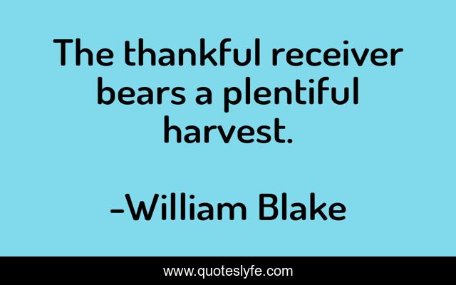 "William Blake Quotes." Quoteslyfe.com, 2025. Mon. 08 Dec. 2025. <https://www.quoteslyfe.com/quote/The-thankful-receiver-bears-a-plentiful-harvest-306008>.