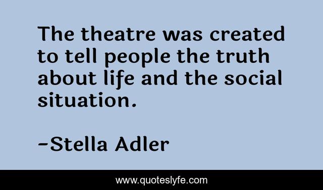 This page presents the quote "The theatre was created to tell people the truth about life and the social situation.". Author of this quote is Stella Adler. This quote is about life, theatre, people,.