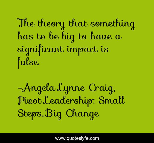 This page presents the quote "The theory that something has to be big to have a significant impact is false.". Author of this quote is Angela Lynne Craig, Pivot Leadership: Small Steps...Big Change. This quote is about leadership, leadership-development,.
