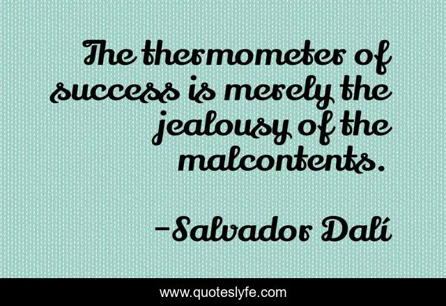 This page presents the quote "The thermometer of success is merely the jealousy of the malcontents.". Author of this quote is Salvador Dalí. This quote is about jealousy, success,.