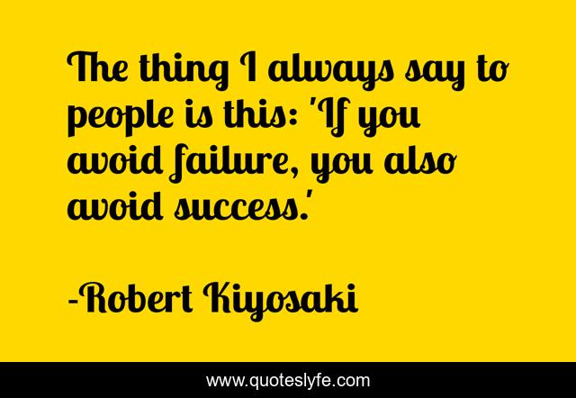 This page presents the quote "The thing I always say to people is this: 'If you avoid failure, you also avoid success.'". Author of this quote is Robert Kiyosaki. This quote is about success, people,.