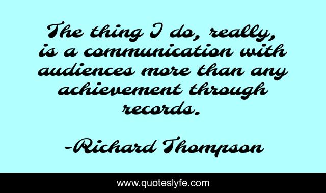 This page presents the quote "The thing I do, really, is a communication with audiences more than any achievement through records.". Author of this quote is Richard Thompson. This quote is about records, achievement,.