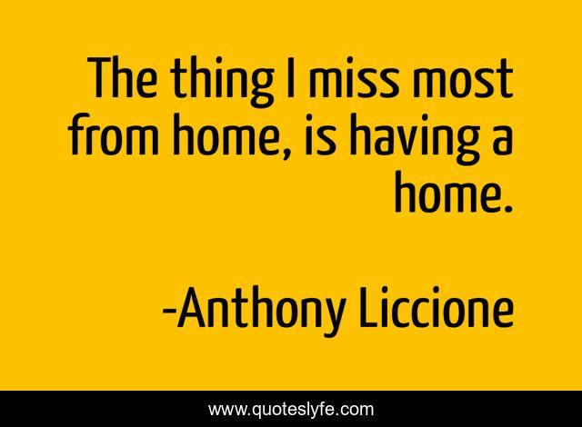 "Anthony Liccione Quotes." Quoteslyfe.com, 2025. Mon. 08 Dec. 2025. <https://www.quoteslyfe.com/quote/The-thing-I-miss-most-from-home-182795>.