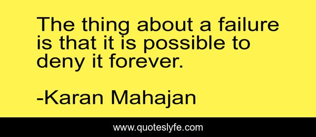 This page presents the quote "The thing about a failure is that it is possible to deny it forever.". Author of this quote is Karan Mahajan. This quote is about deny, forever, possible,.