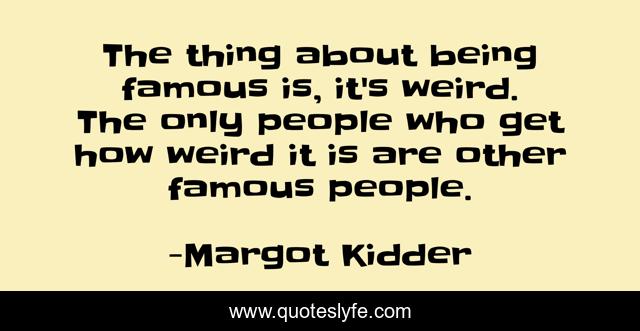 This page presents the quote "The thing about being famous is, it's weird. The only people who get how weird it is are other famous people.". Author of this quote is Margot Kidder. This quote is about famous people, weird, people,.