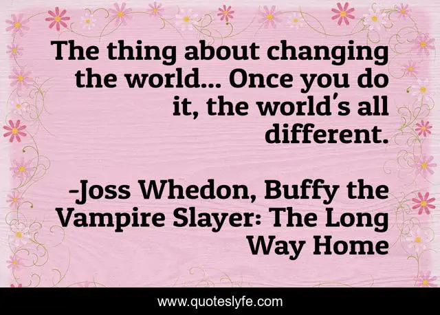 "Joss Whedon, Buffy the Vampire Slayer: The Long Way Home Quotes." Quoteslyfe.com, 2025. Fri. 05 Dec. 2025. <https://www.quoteslyfe.com/quote/The-thing-about-changing-the-world-Once-55317>.