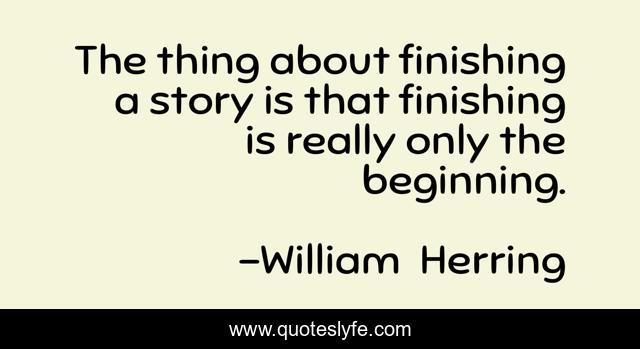 This page presents the quote "The thing about finishing a story is that finishing is really only the beginning.". Author of this quote is William Herring. This quote is about finishing, beginning, story,.