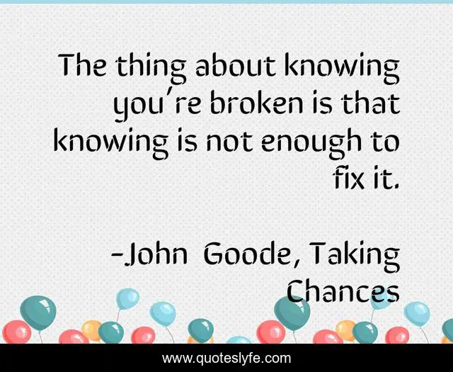 "John Goode, Taking Chances Quotes." Quoteslyfe.com, 2025. Fri. 05 Dec. 2025. <https://www.quoteslyfe.com/quote/The-thing-about-knowing-you-re-broken-37265>.
