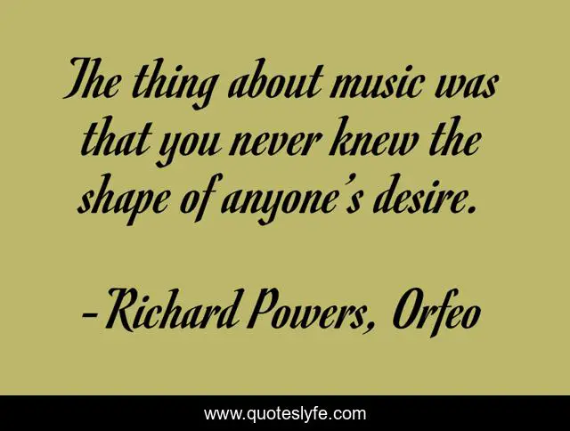 This page presents the quote "The thing about music was that you never knew the shape of anyone’s desire.". Author of this quote is Richard Powers, Orfeo. This quote is about desire, music,.