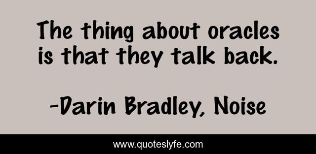 This page presents the quote "The thing about oracles is that they talk back.". Author of this quote is Darin Bradley, Noise. .