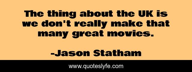 This page presents the quote "The thing about the UK is we don't really make that many great movies.". Author of this quote is Jason Statham. This quote is about many, great, uk,.