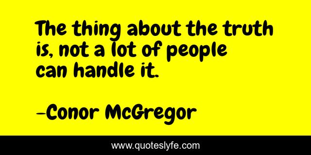 This page presents the quote "The thing about the truth is, not a lot of people can handle it.". Author of this quote is Conor McGregor. This quote is about handle, truth is, people,.