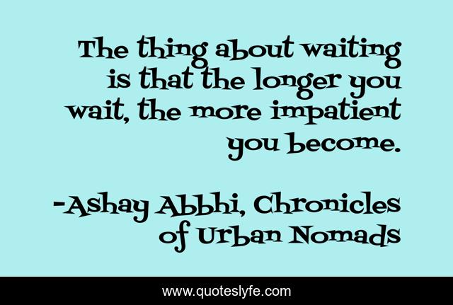 This page presents the quote "The thing about waiting is that the longer you wait, the more impatient you become.". Author of this quote is Ashay Abbhi, Chronicles of Urban Nomads. This quote is about waiting, time, impatience, wait,.