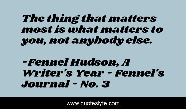 This page presents the quote "The thing that matters most is what matters to you, not anybody else.". Author of this quote is Fennel Hudson, A Writer's Year - Fennel's Journal - No. 3. This quote is about individuality, self-confidence, purpose, self-understanding,.