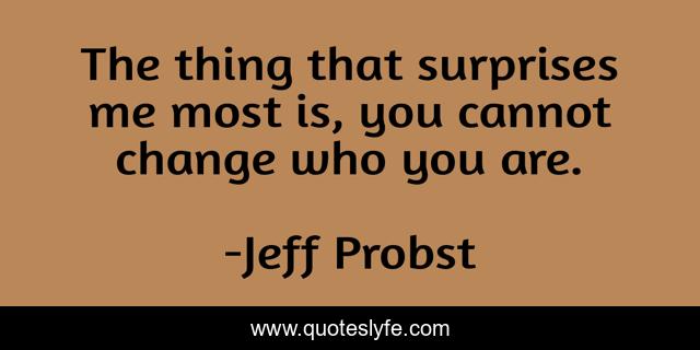 This page presents the quote "The thing that surprises me most is, you cannot change who you are.". Author of this quote is Jeff Probst. This quote is about me, surprises,.