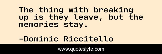 This page presents the quote "The thing with breaking up is they leave, but the memories stay.". Author of this quote is Dominic Riccitello. This quote is about hard, love, letting-go, memories, thinking-of-you, sad, breaking-up, thoughts, truth,.