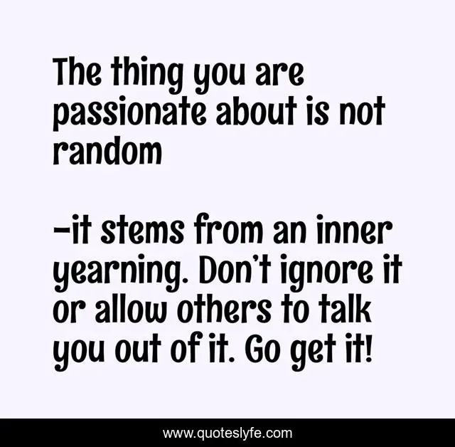 This page presents the quote "The thing you are passionate about is not random". Author of this quote is it stems from an inner yearning. Don’t ignore it or allow others to talk you out of it. Go get it!. .