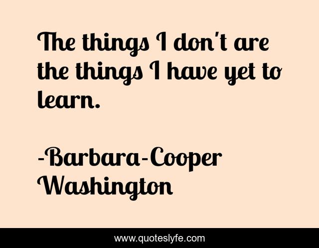 This page presents the quote "The things I don't are the things I have yet to learn.". Author of this quote is Barbara-Cooper Washington. This quote is about enthusiasm, inspirational,.