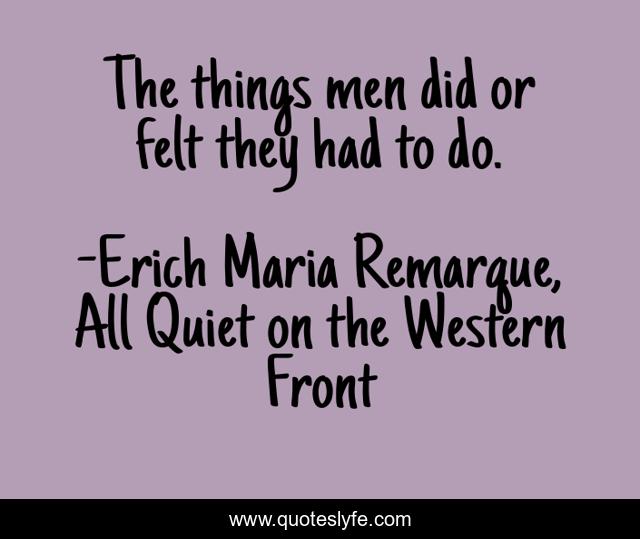 "Erich Maria Remarque, All Quiet on the Western Front Quotes." Quoteslyfe.com, 2025. Mon. 08 Dec. 2025. <https://www.quoteslyfe.com/quote/The-things-men-did-or-felt-they-52221>.